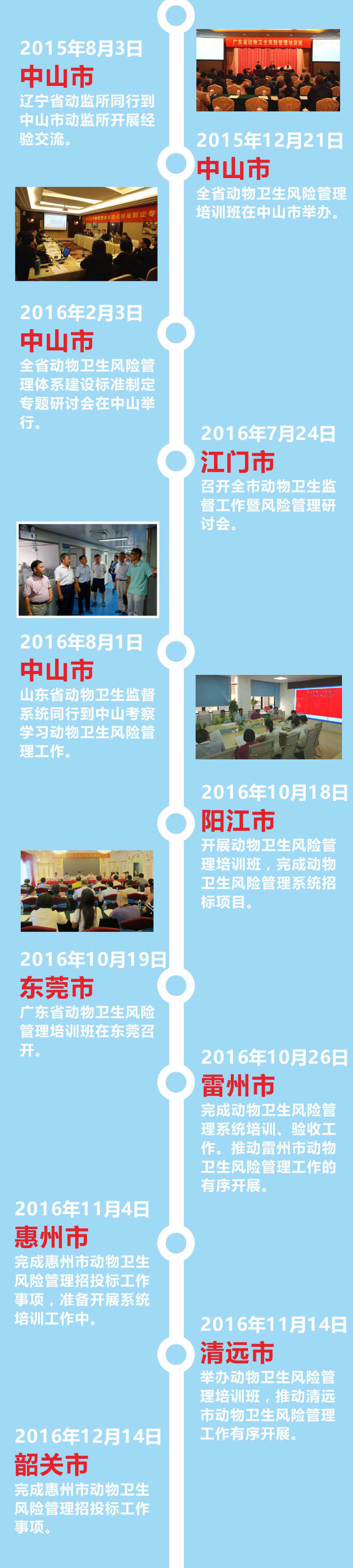 2014年動(dòng)物衛(wèi)生風(fēng)險(xiǎn)管理試點(diǎn)工作在中山市正式啟動(dòng),隨后在廣東省動(dòng)物衛(wèi)生監(jiān)督所的帶領(lǐng)下,東莞、韶關(guān)、河源、惠州、陽江、清遠(yuǎn)和雷州等地市相繼開展試點(diǎn)工作,組織執(zhí)法人員參加風(fēng)險(xiǎn)管理培訓(xùn)班。2015年動(dòng)物衛(wèi)生風(fēng)險(xiǎn)管理系統(tǒng)在青島市通過全國動(dòng)物衛(wèi)生風(fēng)險(xiǎn)評(píng)估專家委員會(huì)的鑒定。短短兩年時(shí)間內(nèi),動(dòng)物衛(wèi)生風(fēng)險(xiǎn)管理試點(diǎn)遍布廣東省內(nèi) 8個(gè)地市。這充分說明動(dòng)物衛(wèi)生風(fēng)險(xiǎn)管理系統(tǒng)的應(yīng)用推廣取得了階段性的成功。廣東省農(nóng)業(yè)廳和廣東省動(dòng)物衛(wèi)生監(jiān)督所對(duì)此給予了高度肯定,并表示,動(dòng)物衛(wèi)生風(fēng)險(xiǎn)管理系統(tǒng)的建立有效提高了工作效率,降低了行政成本,提升了物衛(wèi)生的風(fēng)險(xiǎn)控制能力和監(jiān)督管理水平,應(yīng)該在全省范圍內(nèi)推廣。
