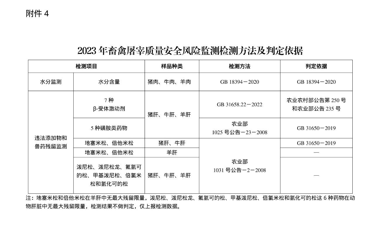 屠宰技術(shù)中心負(fù)責(zé)部級(jí)監(jiān)測(cè)和省級(jí)監(jiān)測(cè)數(shù)據(jù)的匯總與分析工作。部級(jí)監(jiān)測(cè)承檢機(jī)構(gòu)和省級(jí)農(nóng)業(yè)農(nóng)村主管部門(mén)分別于6月25日、12月25日前將上半年、全年監(jiān)測(cè)結(jié)果匯總表(附件3)和監(jiān)測(cè)結(jié)果分析報(bào)告加蓋公章后報(bào)屠宰技術(shù)中心。