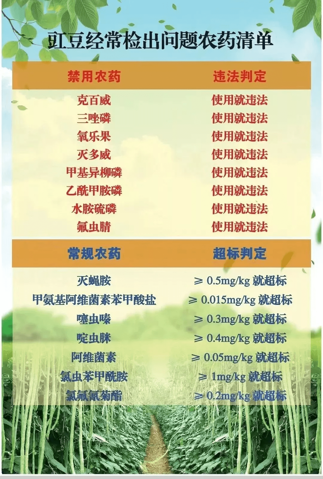 二、豇豆經(jīng)常檢出問題農(nóng)藥清單