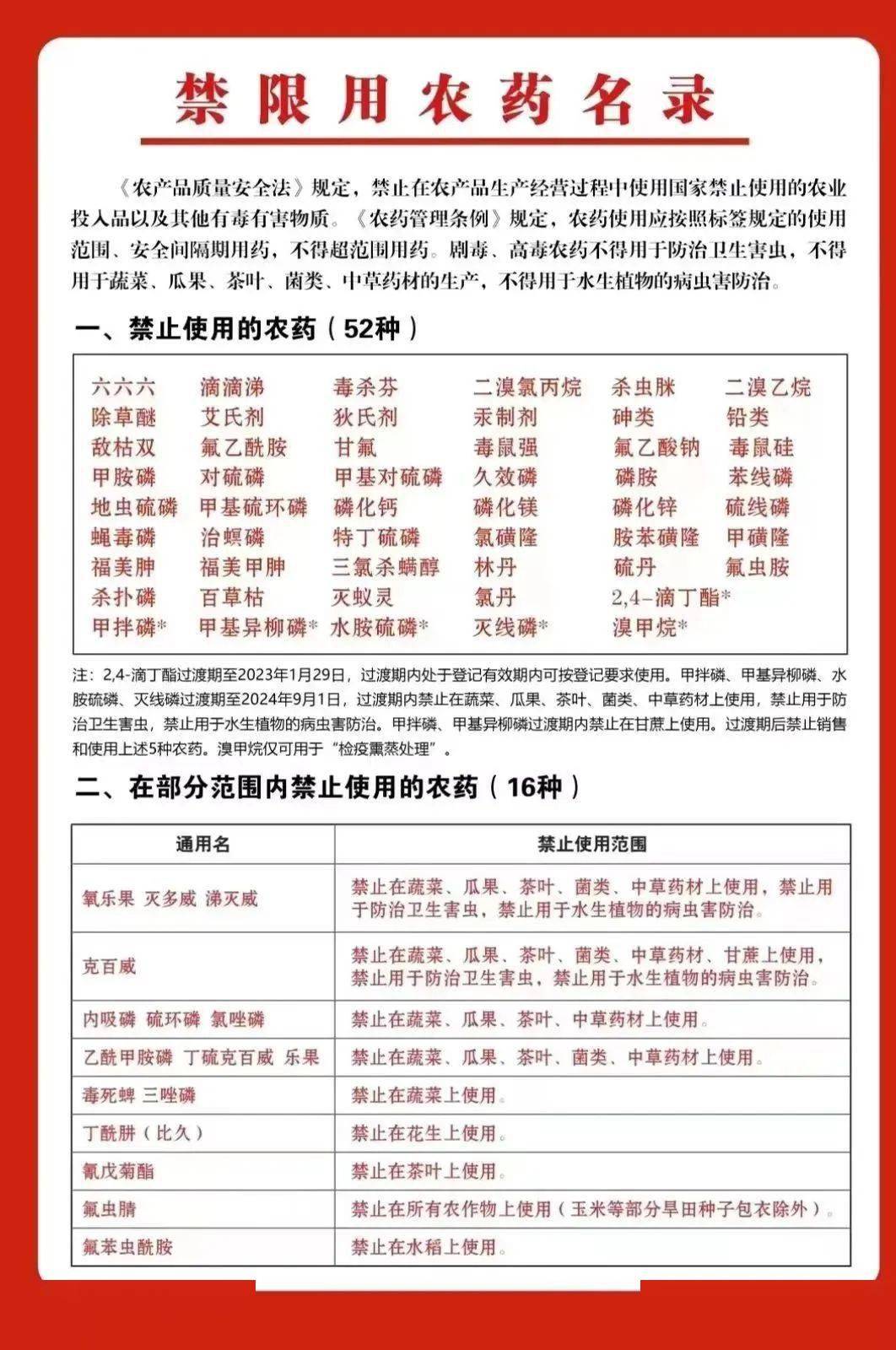 一、農(nóng)產(chǎn)品禁限用農(nóng)藥名錄