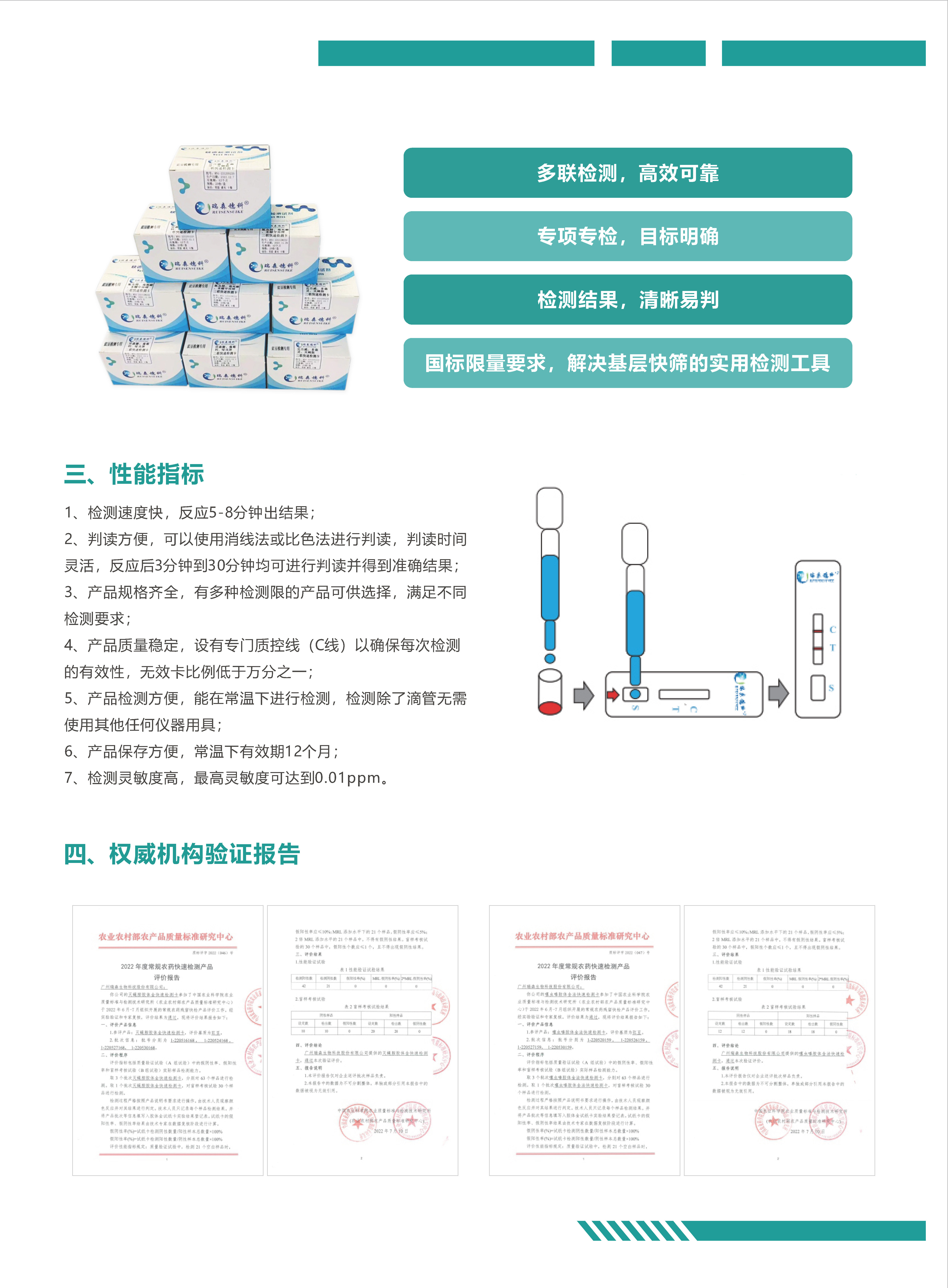 瑞森生物作為廣東省重點(diǎn)農(nóng)業(yè)龍頭企業(yè),一直致力于食品安全檢測(cè)行業(yè),至今已深耕十六年之久。公司在食品安全檢測(cè)領(lǐng)域發(fā)揮了技術(shù)優(yōu)勢(shì),憑借精湛的技術(shù)為客戶提供優(yōu)質(zhì)、穩(wěn)定、可靠的產(chǎn)品,為國人食品安全保駕護(hù)航,也為推動(dòng)食品檢測(cè)行業(yè)高質(zhì)量發(fā)展貢獻(xiàn)了企業(yè)力量。公司屬國家高新技術(shù)企業(yè),廣東省重點(diǎn)農(nóng)業(yè)龍頭企業(yè),廣州市農(nóng)業(yè)龍頭企業(yè),全國重點(diǎn)信用單位,廣東省守合同重信用企業(yè),中國生物科技行業(yè)自主創(chuàng)新品牌企業(yè),目前擁有國家專利29項(xiàng),國家軟件著作權(quán)18項(xiàng),高新技術(shù)產(chǎn)品15項(xiàng),技術(shù)項(xiàng)目研發(fā)5項(xiàng)。公司現(xiàn)擁有快速檢測(cè)試劑和設(shè)備上百種,核心產(chǎn)品通過農(nóng)業(yè)農(nóng)村部驗(yàn)證,可為監(jiān)管部門、農(nóng)牧企業(yè)、經(jīng)銷商提供專業(yè)、全面的檢測(cè)產(chǎn)品和服務(wù)。