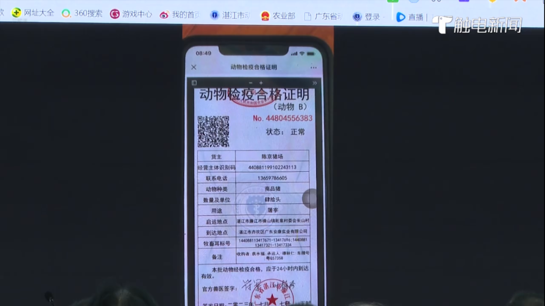 2023年7月7日, 湛江市無紙化出具動物檢疫合格證明和動物B證試點工作正式啟動,成為廣東省首個在動物產(chǎn)地檢疫環(huán)節(jié)實現(xiàn)無紙化出證的地級市,標志著湛江動物檢疫和獸醫(yī)行政監(jiān)管工作邁入無紙化時代。